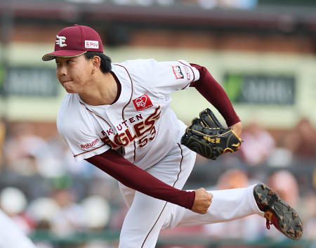 楽天が3連勝。1点差を追い付かれた直後の8回、宗山の犠飛で勝ち越した。プロ初先発の坂井(写真)は5回1失点。2番手の古謝が7勝目をマークし、9回を抑えた藤平が12セーブ目を挙げた=4日、楽天モバイル 【時事通信社】