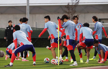 サッカー日本代表は12日、国際親善試合のガーナ戦(14日、愛知・豊田スタジアム)に向け、千葉市内で冒頭以外を非公開にして練習した。 【時事通信社】