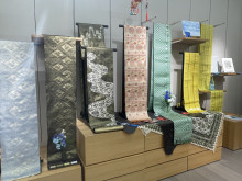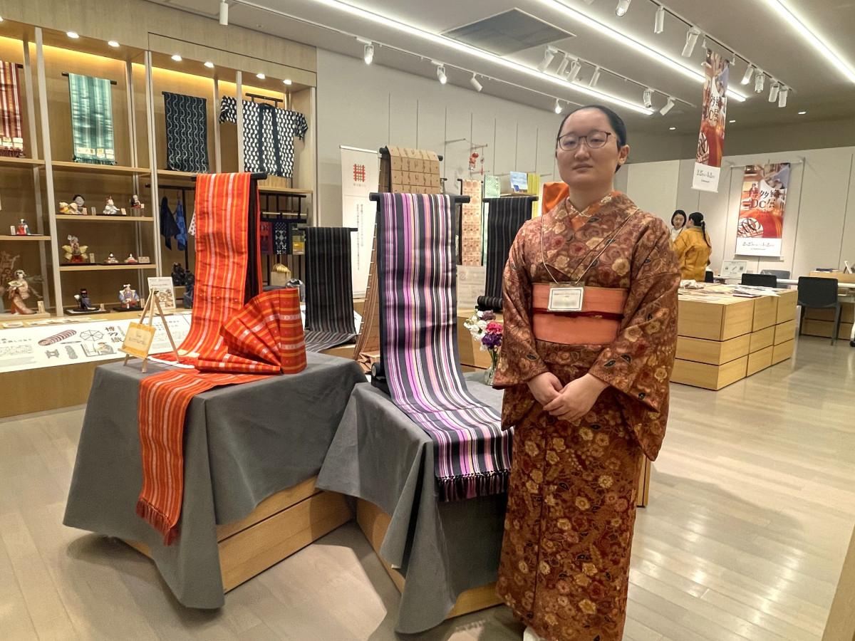 天神で「博多織DC」学生の作品展 デザインした帯展示、シュシュ販売も