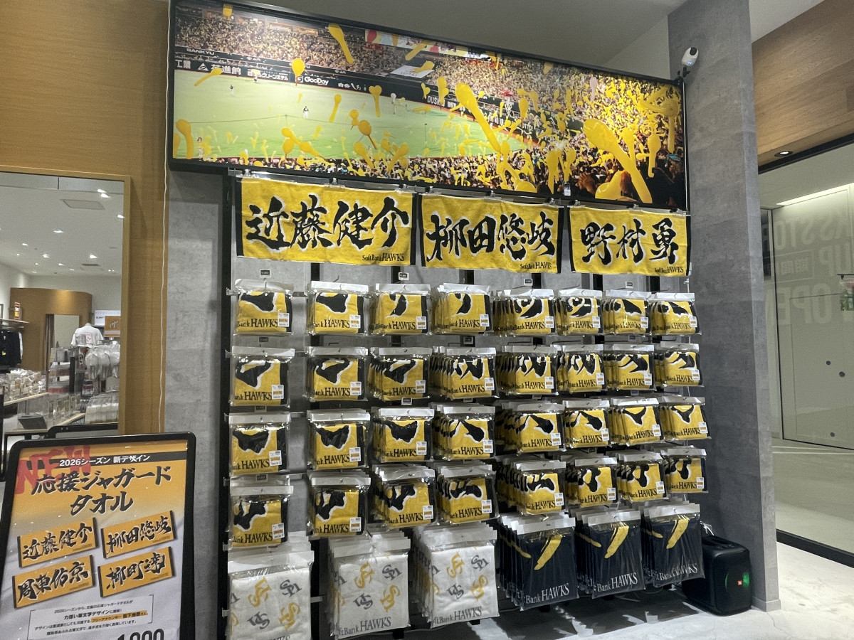 福岡ソフトバンクホークスオフィシャルグッズショップ「HAWKS STORE」が現在、マークイズ福岡ももち(福岡市中央区地行浜2)2階に期間限定で出店している。