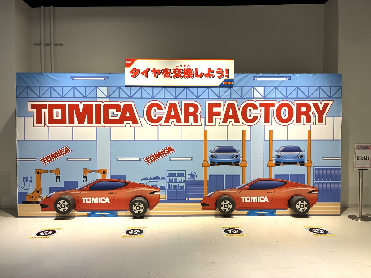 「トミカ・プラレールフェスティバル in FUKUOKA」の「タイヤ交換をしよう」エリア