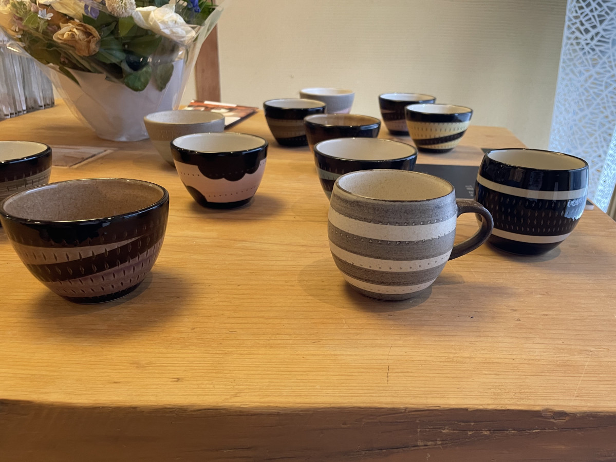 1階で購入できる筑前小石原焼のマグカップとおわんカップ