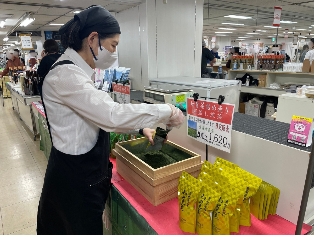 大丸福岡天神店で開催中の「第5回 南の宝箱 鹿児島展」初出店の「下窪勲製茶」の「知覧茶詰め売り深蒸し煎茶」