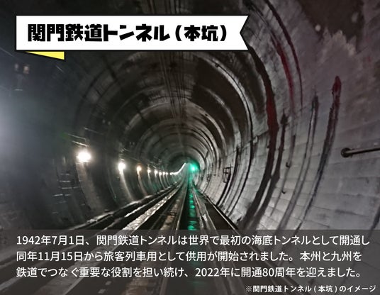 九州旅客鉄道株式会社(以下、JR九州)では、「関門鉄道トンネル アルミカート貸切乗車体験」を発売いたします。建設から80年以上経過した今も、現役で本州と九州を結ぶ鉄道トンネルの歴史を肌で感じながら、世界初の海底トンネルと言われる関門鉄道トンネルをアルミカートで走り抜けてみませんか?ここでしか体験できない特別な機会に、皆さまのご参加をお待ちしております。