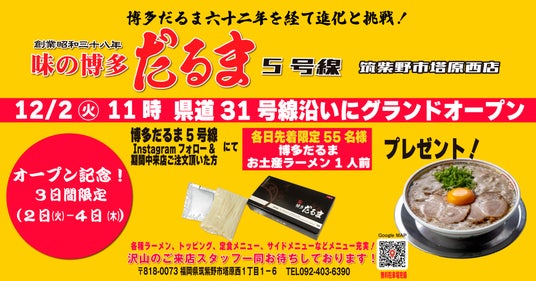 「博多だるま」福岡では初のロードサイド路面店オープン!筑紫野市で博多だるまが楽しめる!