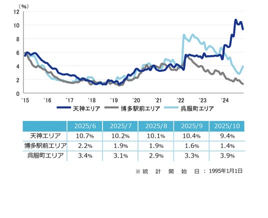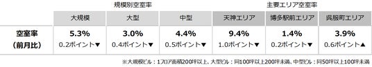 空室率 前月から低下 「天神」は1.0ポイントの大幅な低下