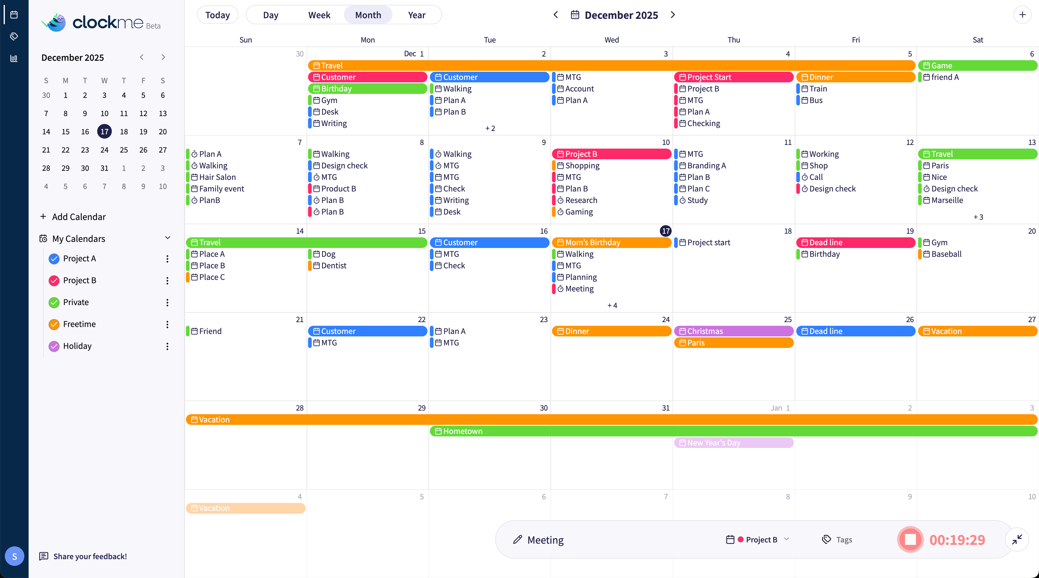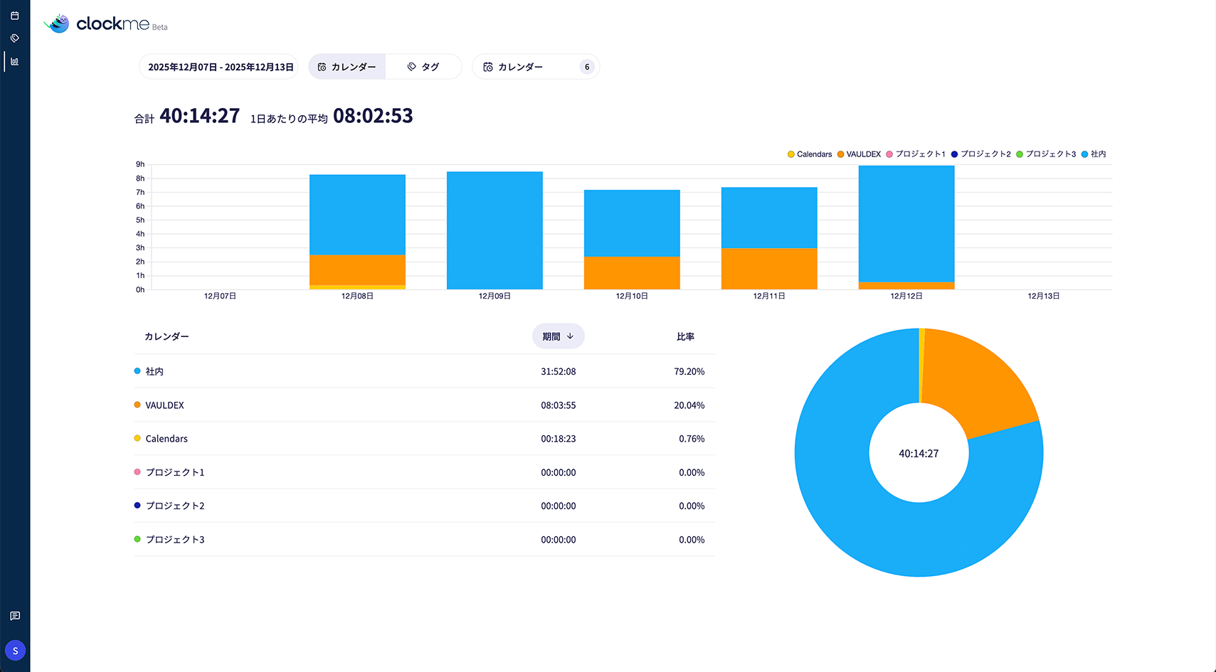 Clock Me は、これらの課題を解決するために カレンダービュー を採用しています。
