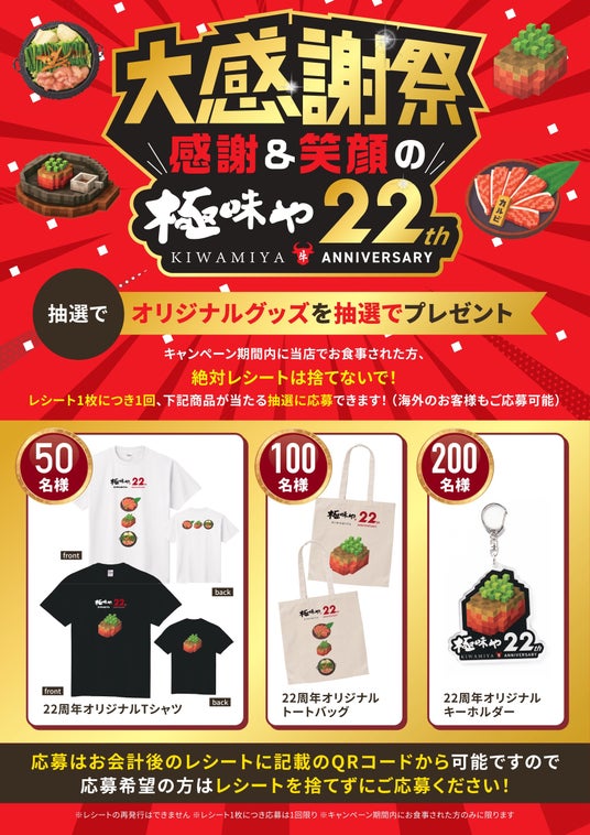 また期間内にお食事をされた方限定で、お会計時のレシートに印字されたQRコードを読み取ることで、プレゼント企画への応募も可能。日本国内はもちろん、海外のお客様も応募が可能です。