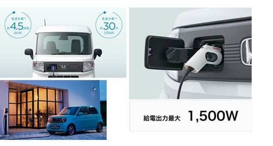 ・給電能力:バッテリ容量29.6KWh 最大給電出力1,500W(外部給電器併用時6,000W)