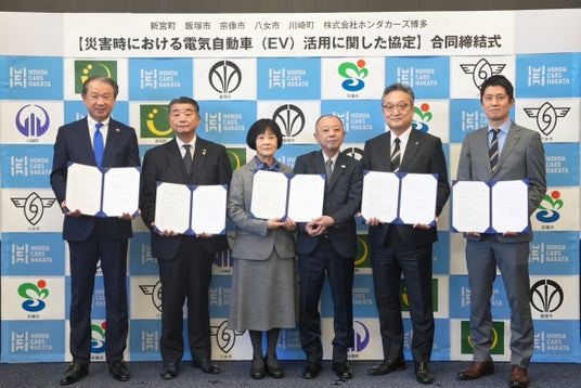 株式会社ホンダカーズ博多(本社:福岡県糟屋郡新宮町、代表取締役:岩丸 博紀、以下「弊社」)は、地域社会への貢献と災害対応能力の向上を目的として、2025年2月3日、弊社本社で新宮町、飯塚市、宗像市、八女市、川崎町と【災害時における電気自動車(EV)の活用に関する協定】を締結いたしました。