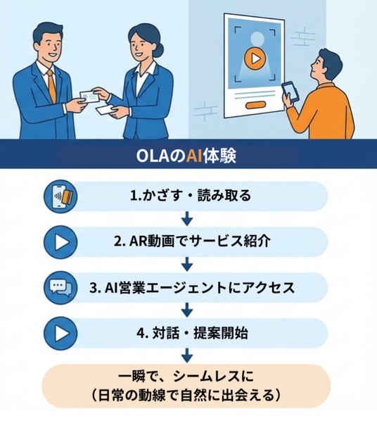 OLAは、名刺や看板などの物理媒体にAI営業エージェントを配置する仕組み。