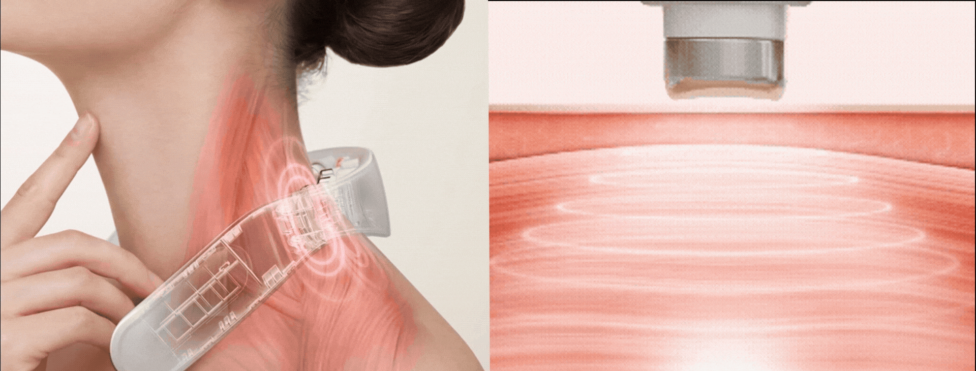 業界最大級*の大型パッドにより、首から肩にかけての広範囲を一度にカバー。プロの技術を応用した振動圧で、首を包み込むように揺らしながら、こわばった筋肉にアプローチします。強度は3段階から選択可能です。