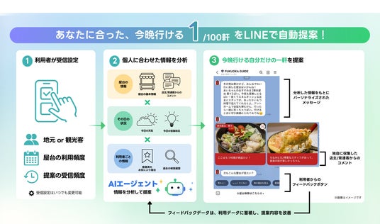 LINEヤフーコミュニケーションズ株式会社(本社:福岡市博多区、以下当社)は、福岡市と共働し、屋台のLINE公式アカウント「FUKUOKA GUIDE」において、新たに“今晩行ける自分だけの一軒”を自動で提案する機能の実証実験を2026年3月18日より開始します。