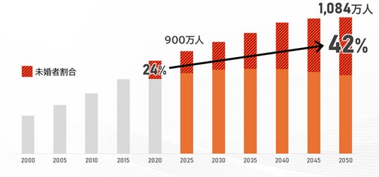 高齢者等終身サポート(身元保証)事業について、現在では、その事業者の数は400を超える状況となっています。このような事業者増加の背景にあるのは、単身高齢者の増加にあります。おひとりさま高齢者の数はいまや900万人を超えるといわれています。